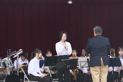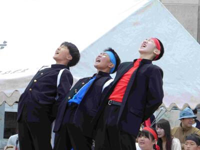 演奏したのは、誰もが耳にしたことのある「銀河鉄道999」、しっとりと聴かせる「美女と野獣」、観客も手拍子をしながら盛り上がった「Sing Sing Sing」の3曲。たくさんの観客の前で、楽しくそして堂々と演奏し祭りを盛り上げました。