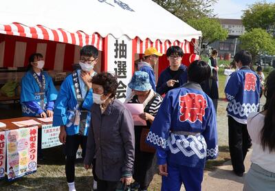 また、この神町まつりのために3年生10名がボランティアとして参加し、舞台設営の準備や抽選会場のお手伝いなどを一生懸命頑張りました。