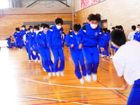 レクレーションを行っています。1年生は長縄大会、2年生は逃走中、3年生はクラス対抗人文字づくり。