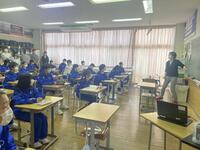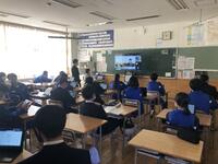 PC室をスタジオにして、各クラスとオンラインでつなぎます。生徒会役員と一般生徒のやり取りを全校生徒が視聴する形式です。その形式も慣れたもので、進行も非常にスムーズでした。思いがけない質問で全校生徒が笑う場面もあったようですね。みなさん、ご苦労様でした。